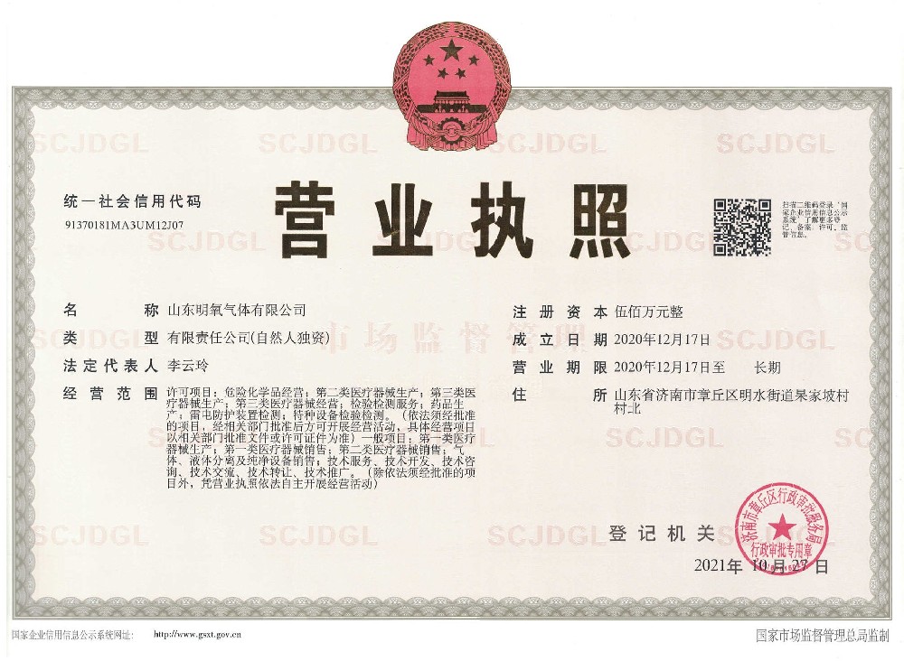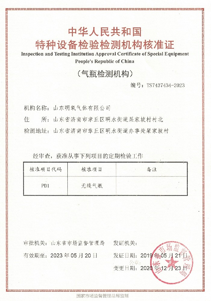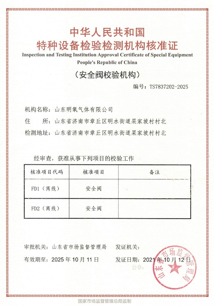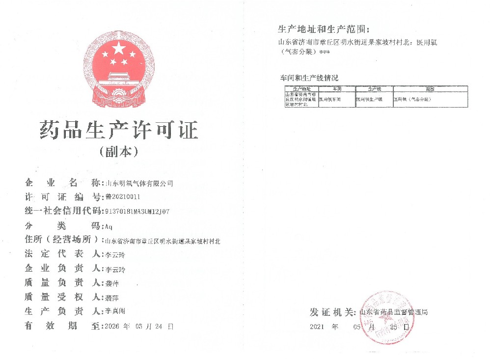 ??? 山東明氧氣體有限公司的前身為始建于1993年的章丘市明水氧氣廠,2020年12月企業(yè)由民營獨(dú)資轉(zhuǎn)型升級(jí)為山東明氧氣體有限公司,企業(yè)進(jìn)入新的發(fā)展階段。公司位于山東省濟(jì)南市章丘區(qū)明水街道杲家坡村村北,占地面積4000平方米,注冊(cè)資金500萬元,固定資產(chǎn)投資3000萬元,主要經(jīng)營項(xiàng)目為醫(yī)用氧氣、工業(yè)氧氣、氮?dú)?、高純氮?dú)狻鍤?、高純氬氣、高純氦氣、二氧化碳、混合氣體等各種工業(yè)氣體、高純氣體、混合氣體的充裝銷售、各類氣瓶的銷售、安全閥校驗(yàn)、鋼質(zhì)無縫氣瓶的檢驗(yàn)等。